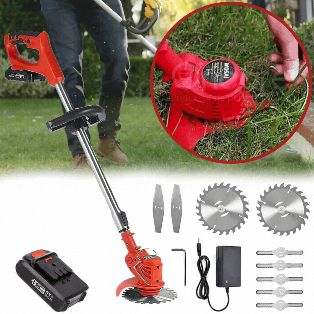 Motocoasa electrica fara fir cu lama metalica | Tuns si taiat iarba cu baterie reincarcabila | Unealta gradina usoara si eficienta